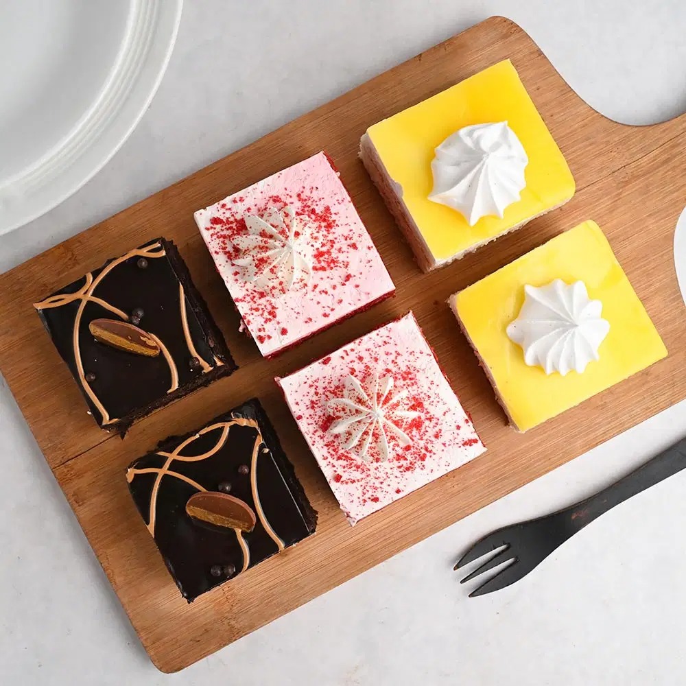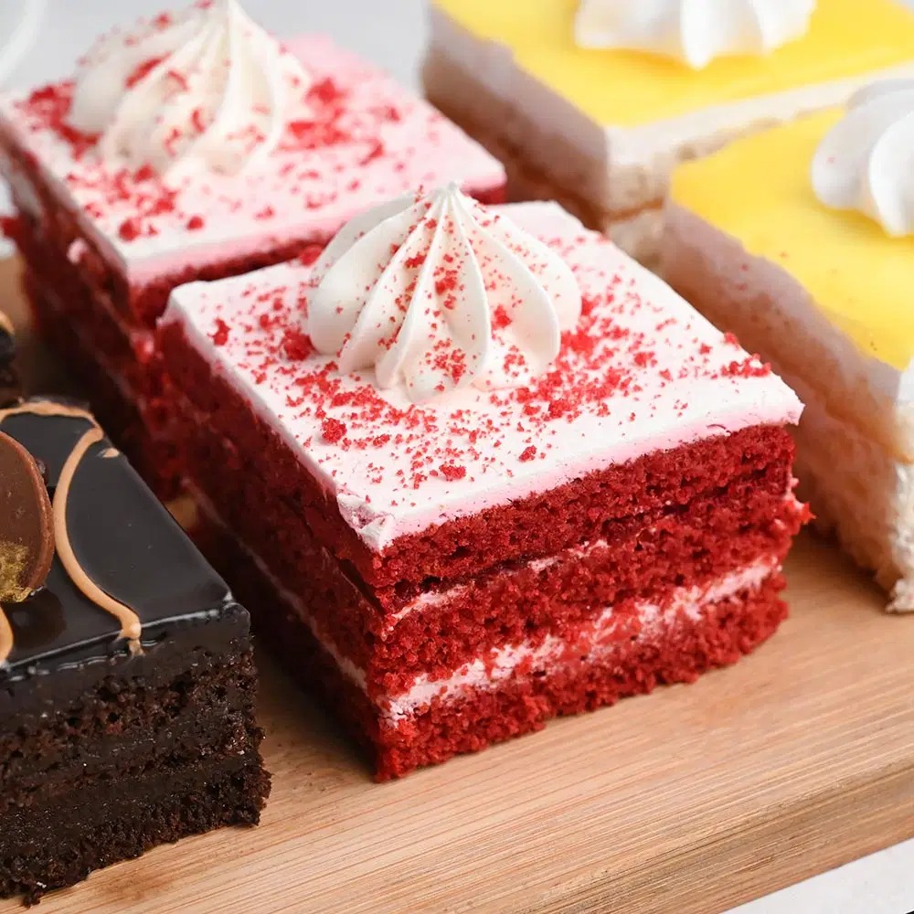 A refined mix of truffle, red velvet, and pineapple pastries.