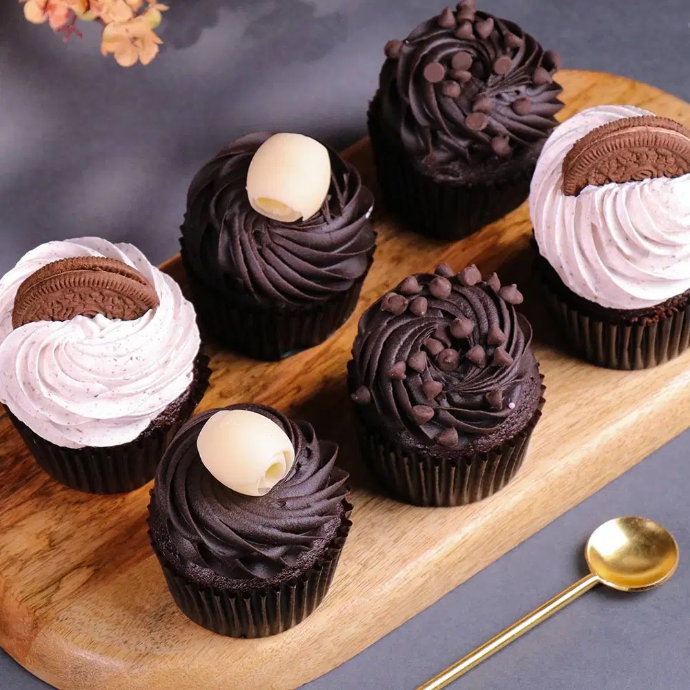 Silky frosting, choco chip crunch, and Oreo toppings come together on moist chocolate cupcakes for a treat that feels like a mini celebration.