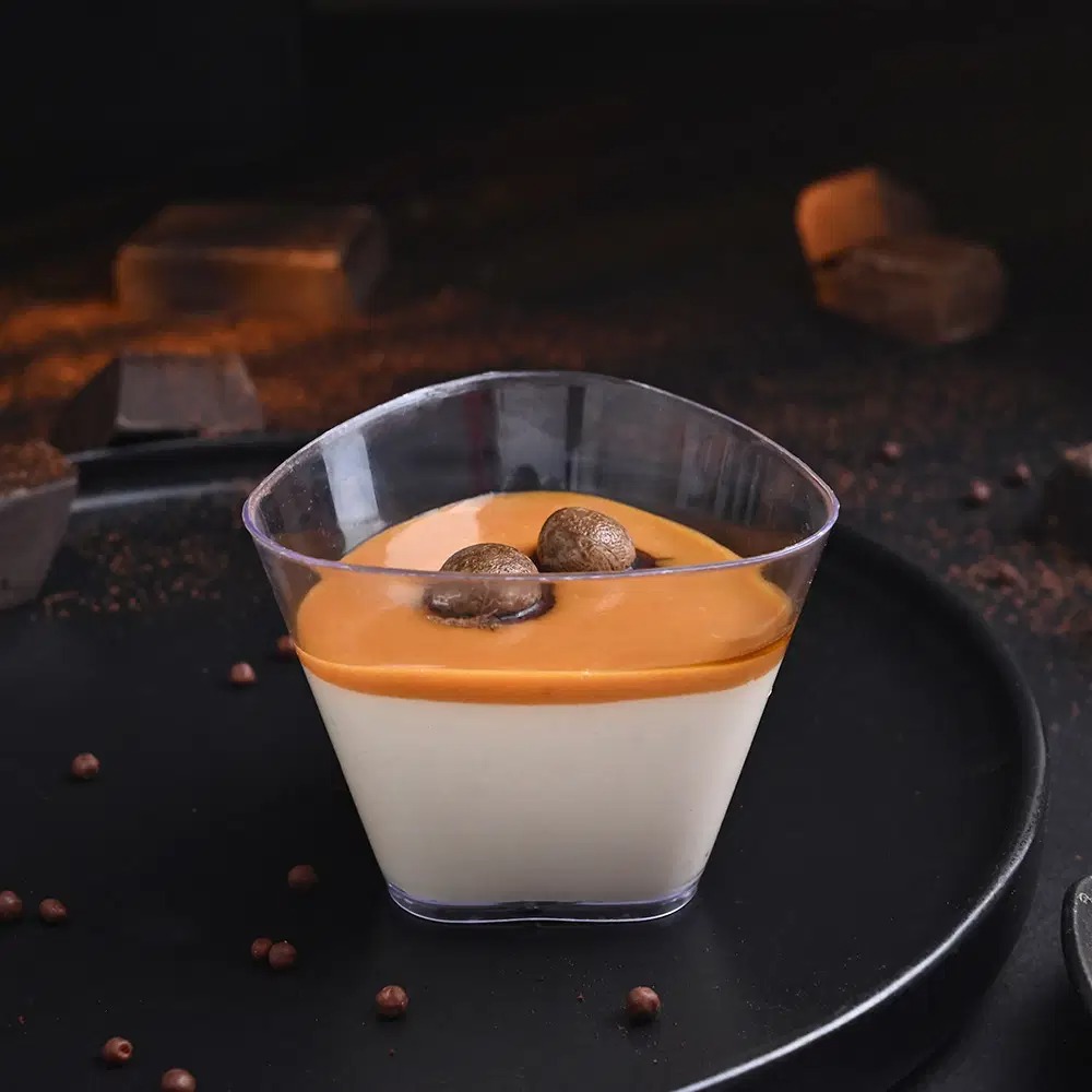 Layers of cream cheese mousse topped with rich caramel glaze make this Verrine Cup a creamy, melt-in-mouth dessert best served chilled.