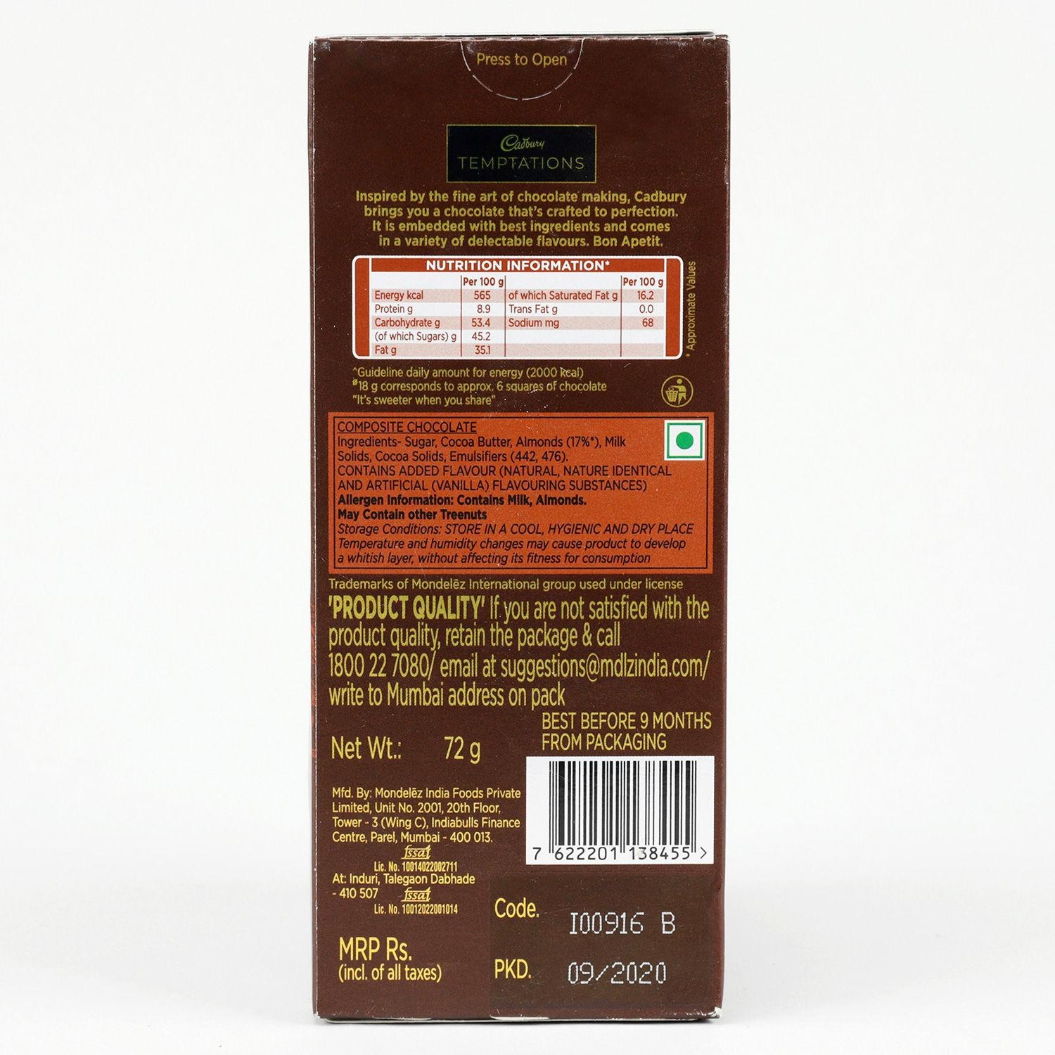 - 1 Pc of Cadbury Temptations Almond Treat Chocolate- 72 gms
