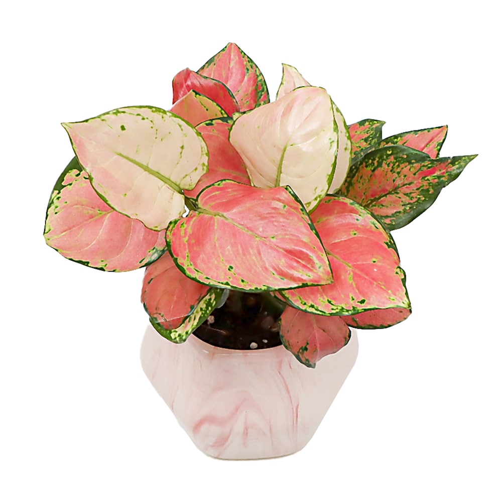 Product Name - Pink aglonema plant in Pink Hexagon Pot