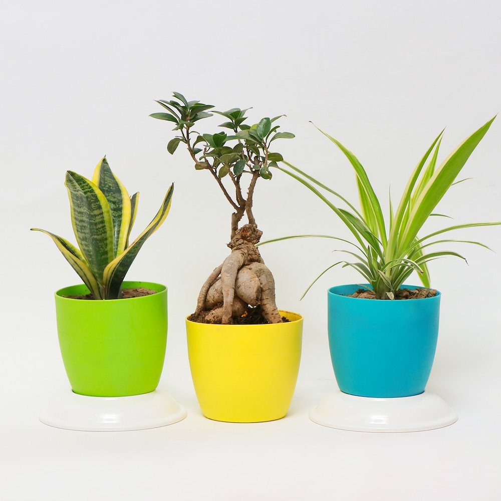 - Plant Name - Snake Plant, Bonsai and Spider Plant