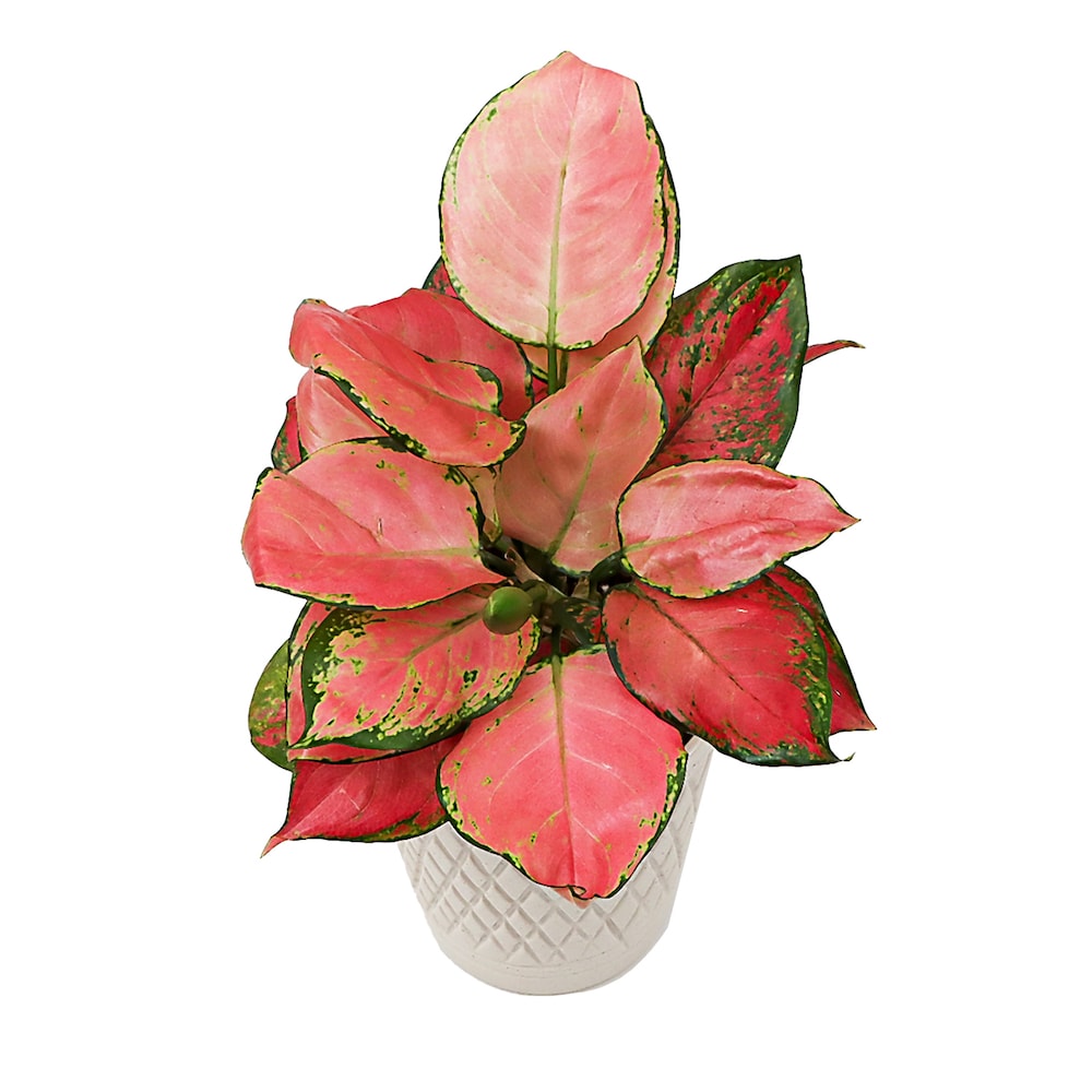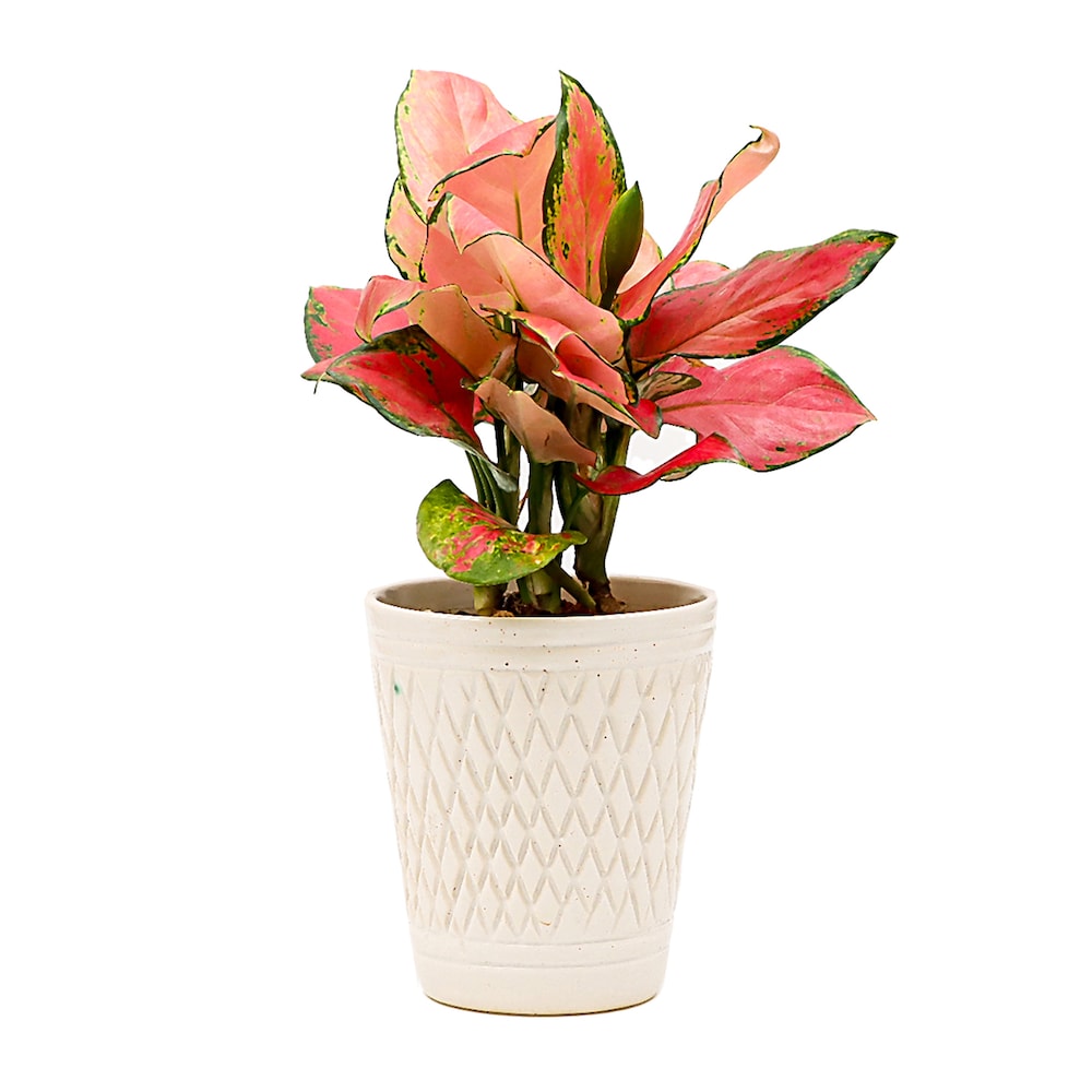 Product Name - Pink Aglonema Plant in V Cut Ceramic Pot