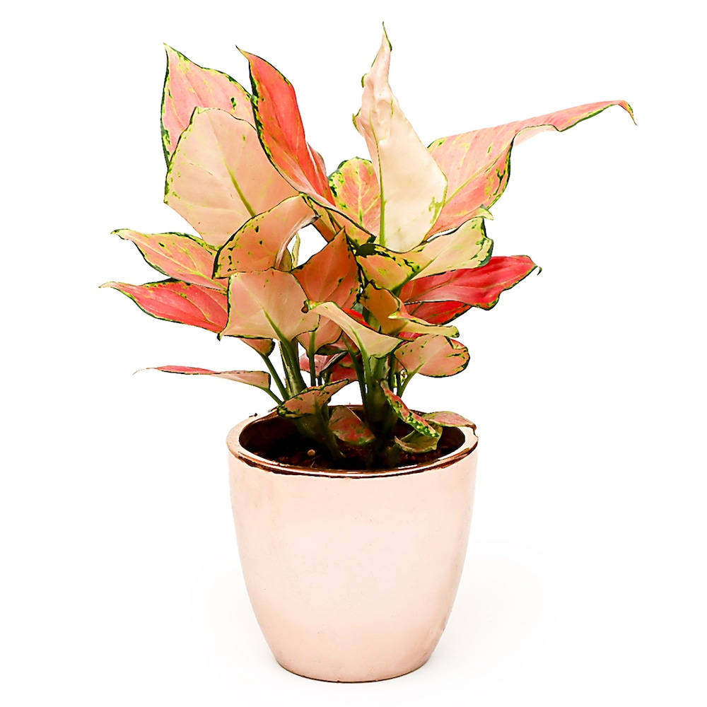 Product Name - Green Aglonema in Blue Hexagon Pot