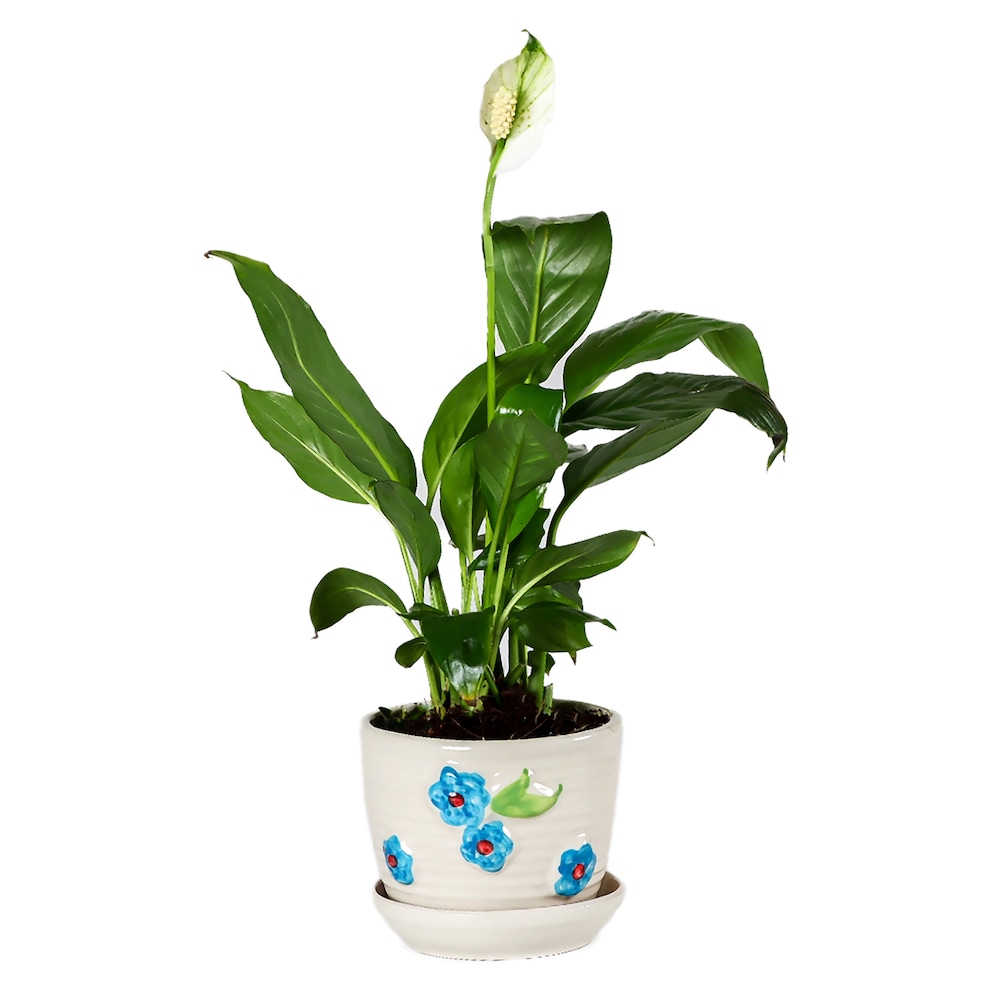 Product Name - Peace Lilly Plant in Flower with plate Ceramic Pot