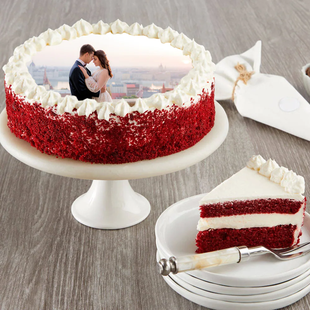 - Toppings: Cream , Photo - Sheet & Red Velvet Garnish