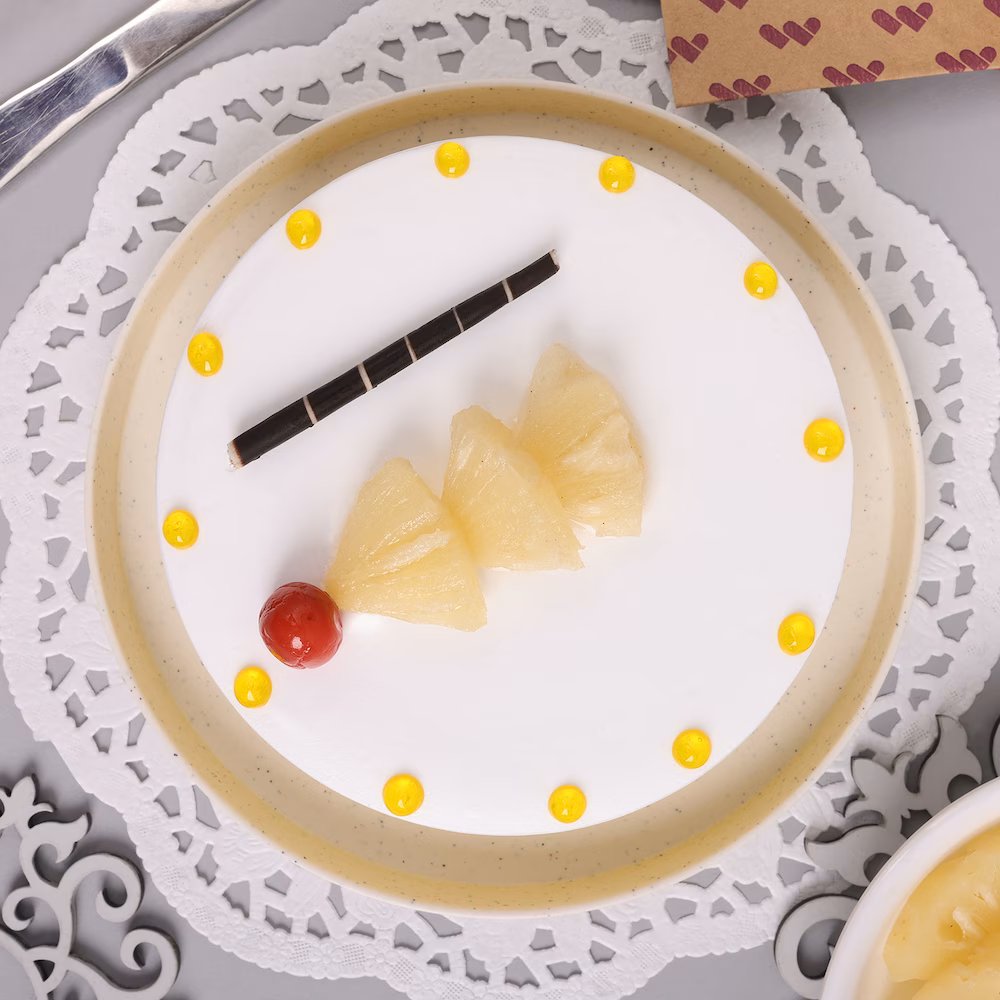 - Toppings: Pineapple , Chocolate & Cherry Garnish