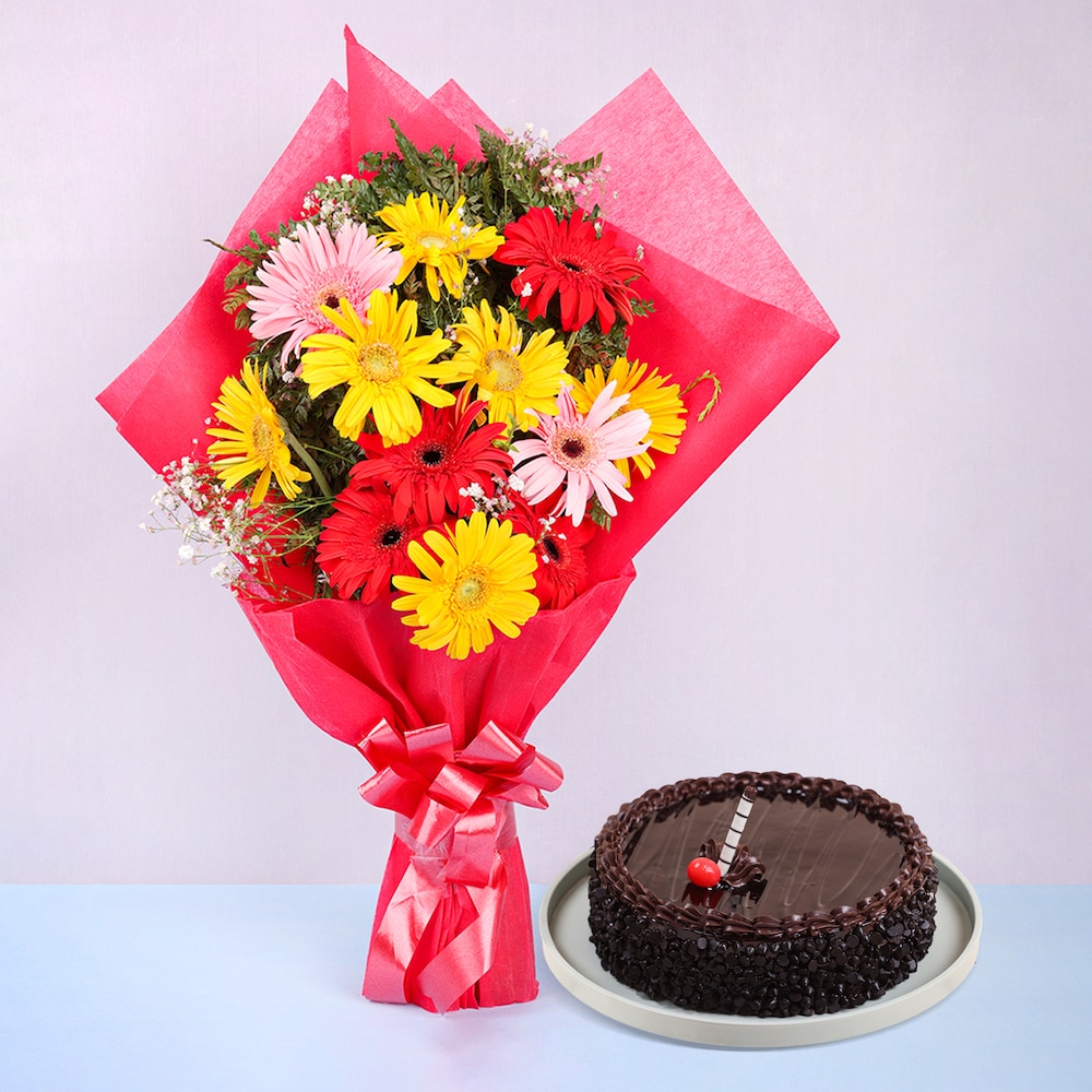 - Flowers Contains: 4 Red Gerberas , 2 Pink Gerberas , 6 Yellow Gerberas