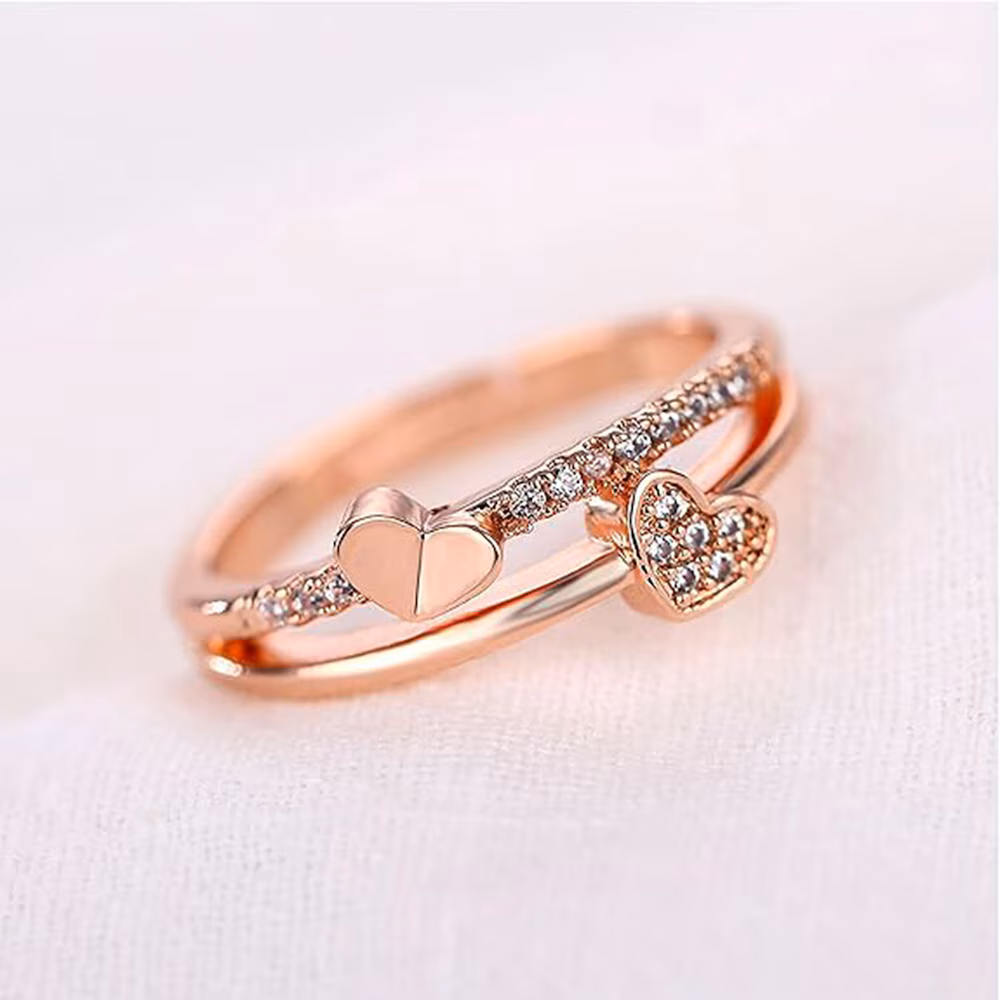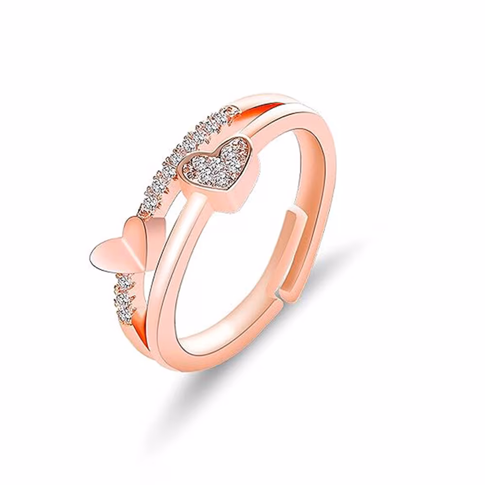 - Elegant Heart AD Rose Gold Plated Ring For Women
