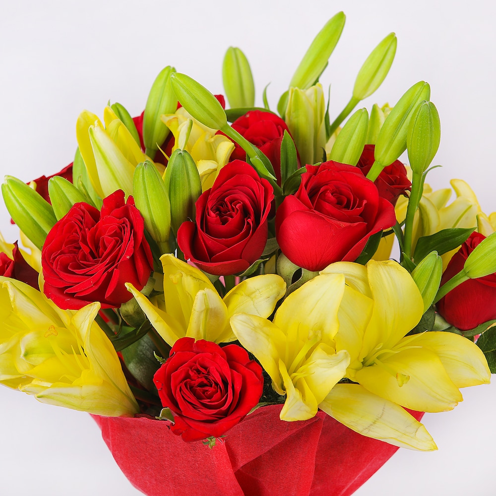 - Flowers Contains: 12 Red Roses , 10 Yellow Lilies