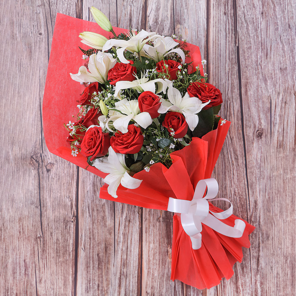 - Flowers Contains: 10 Red Roses + 3 Lilies