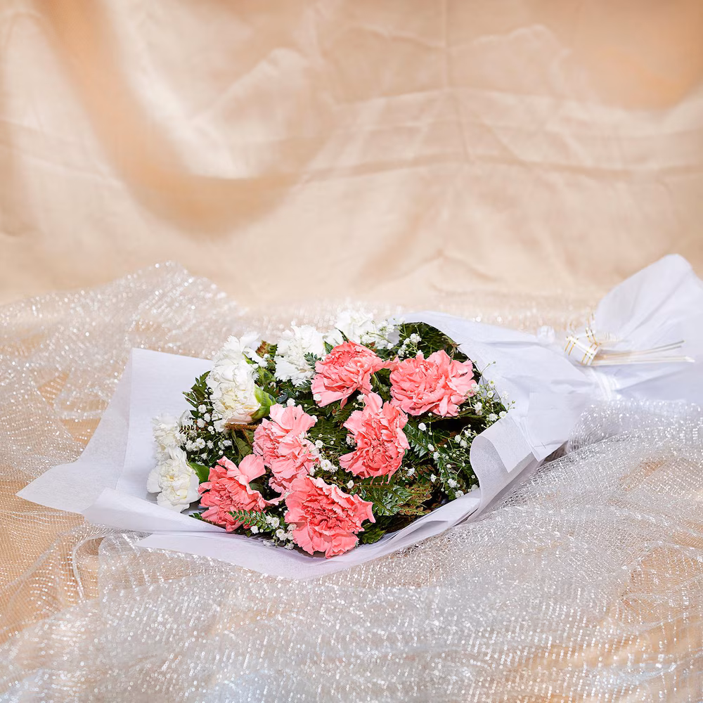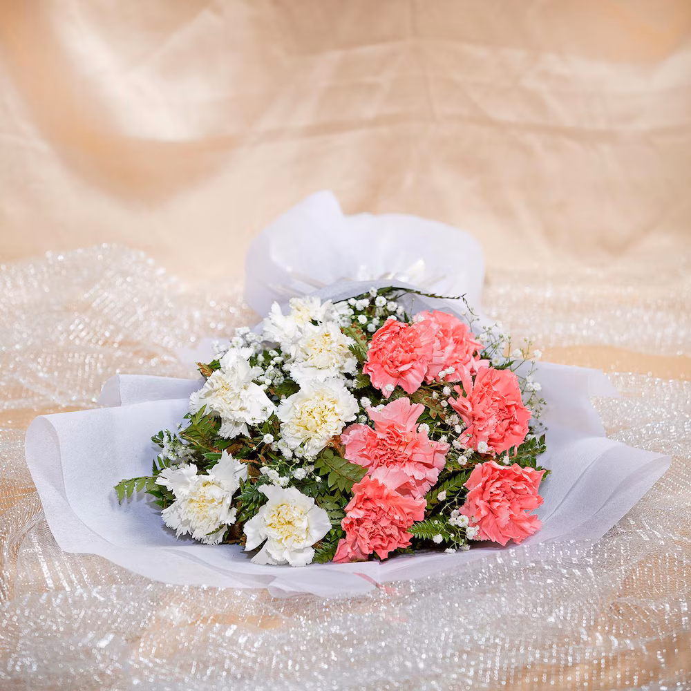 - Flower Type: 6 Pink Carnations & 6 White Carnations