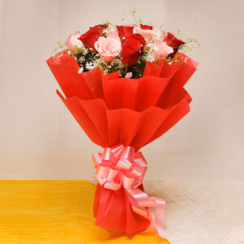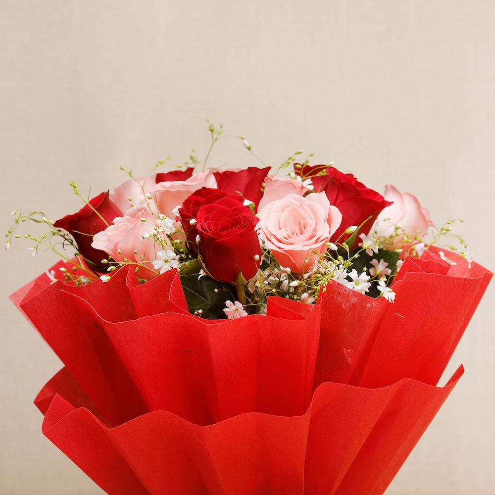- Flowers Contains: 8 Red Roses + 7 Pink Roses