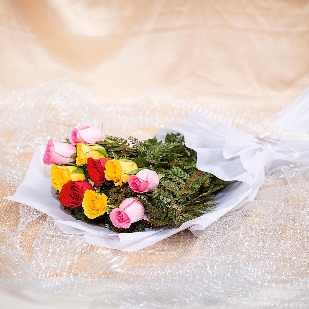 - Flowers Contains: 4 Pink Roses , 4 Yellow Roses , 2 Red Roses
