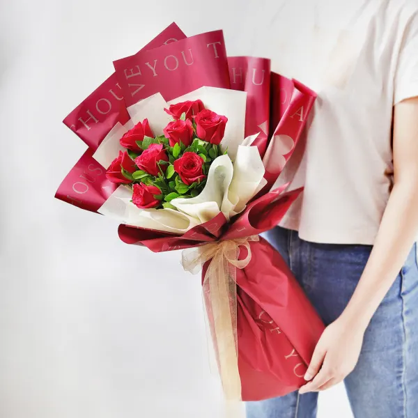 Exquisitely hand-picked by our expert florists these red roses are hand-tied elegantly in maroon sheet and off-white tissue.