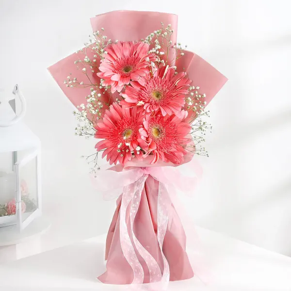 Looking for last-minute gift ideas? Introducing our exquisite bouquet, designed to bring joy and happiness to your beloved. Our expert florists have handcrafted this gorgeous bouquet using the freshest light pink gerberas, ensuring it is both beautiful and long-lasting. Give this to your loved one and make their day. You can also gift this to your friends and family on special occasions like birthdays, anniversaries, housewarming parties, and more.