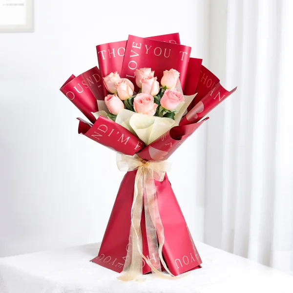 Wrapped in a 'Love You' red sheet, expressing affectionate sentiments, and elegantly tied with a shimmering gold tissue ribbon, this bouquet is a heartfelt gesture for your beloved.