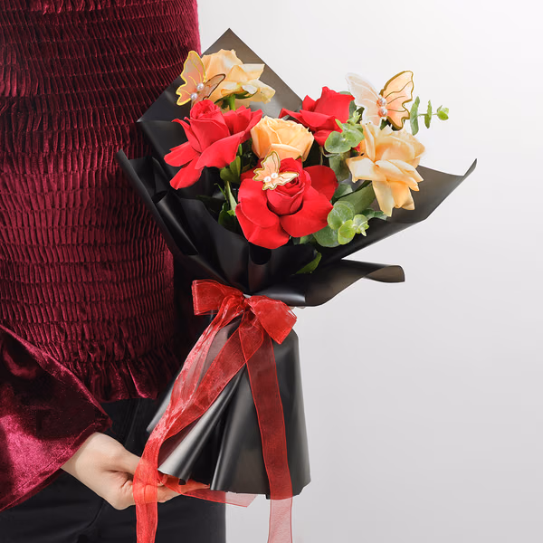 Expertly hand-tied, this bouquet is a heartfelt gift that exudes romance and sophistication, making your special occasions truly unforgettable.