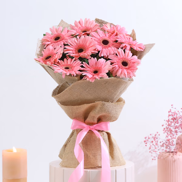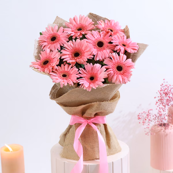 Surprise your loved ones with these vivid and lively Gerberas. This bunch consists of ten pink Gerberas which will brighten up anyone's day, not to mention the joy that it brings along.
