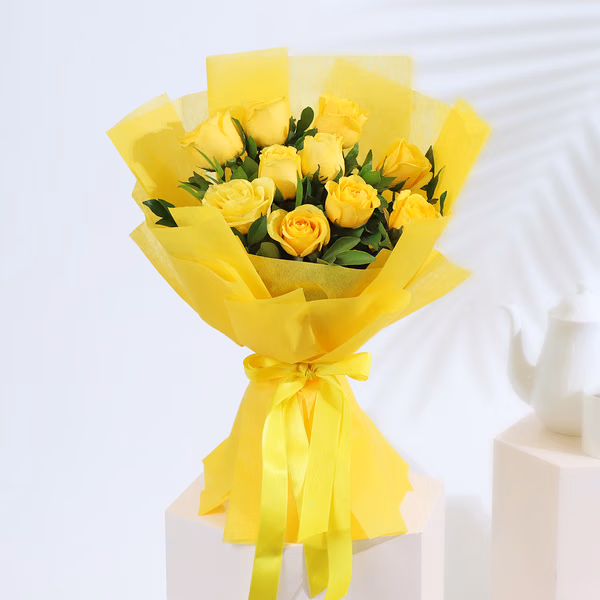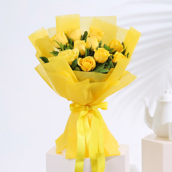 A beautiful flower arrangement of yellow roses which can be given to a loved one on any joyous occasion.