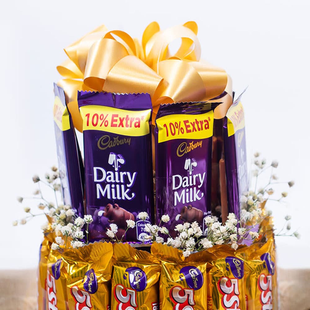 - Chocolate: Qty-10 Dairy Milk Chocolates -13.2gm Each